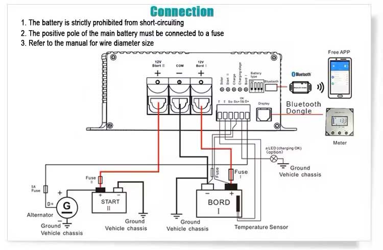 Charge converter,"Battery to Battery (B2T/BTB)"operation, mobile operation from alternator and starter battery (Battery to Battery).