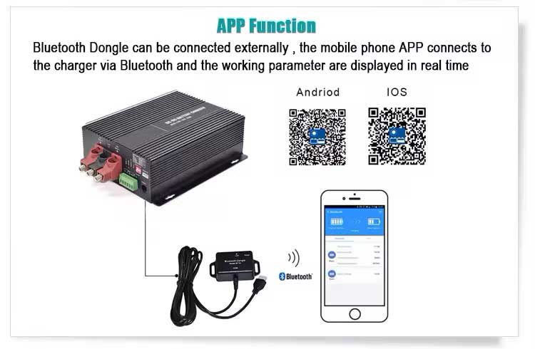 Model:IPS-B2B124820 ① DC INPUT: 12V Battery ② DC OUTPUT: GEL, Sealed, Flooded, LifePO4(8 type of battery parameters) ③ Charging current: 20A ④ Size: 190*215*70MM ⑤ Weight: 1.7KG ⑥ Material of shell: Aluminum ⑦ HS code: 8504409999 ⑧ Accessories: Monitor(MT-2)Bluetooth Dongle(BT10)Temperature Sensor(TRS)